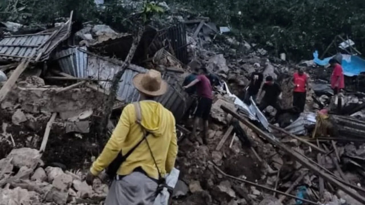 Equipos de emergencia trabajaron en la remoción de escombros y en la verificación de las viviendas cercanas al cerro, ante el riesgo de nuevos deslizamientos debido a las lluvias continuas.
