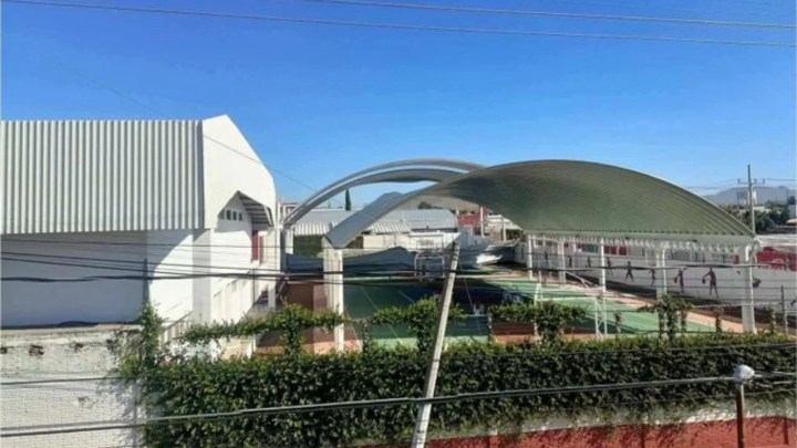 El incidente ocurrió la mañana del miércoles 29 de octubre, cuando fuertes vientos azotaron la región y desprendieron parte de la estructura metálica que cubría el área deportiva del plantel.