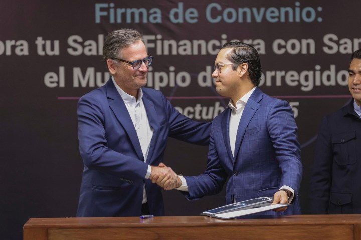 El presidente municipal de Corregidora, Chepe Guerrero, y el director ejecutivo de Distribución y Regionalización de Banco Santander México, Antonio Basagoiti, firmaron un convenio para entregar mil becas “Salud Financiera Santander” a universitarios del municipio.