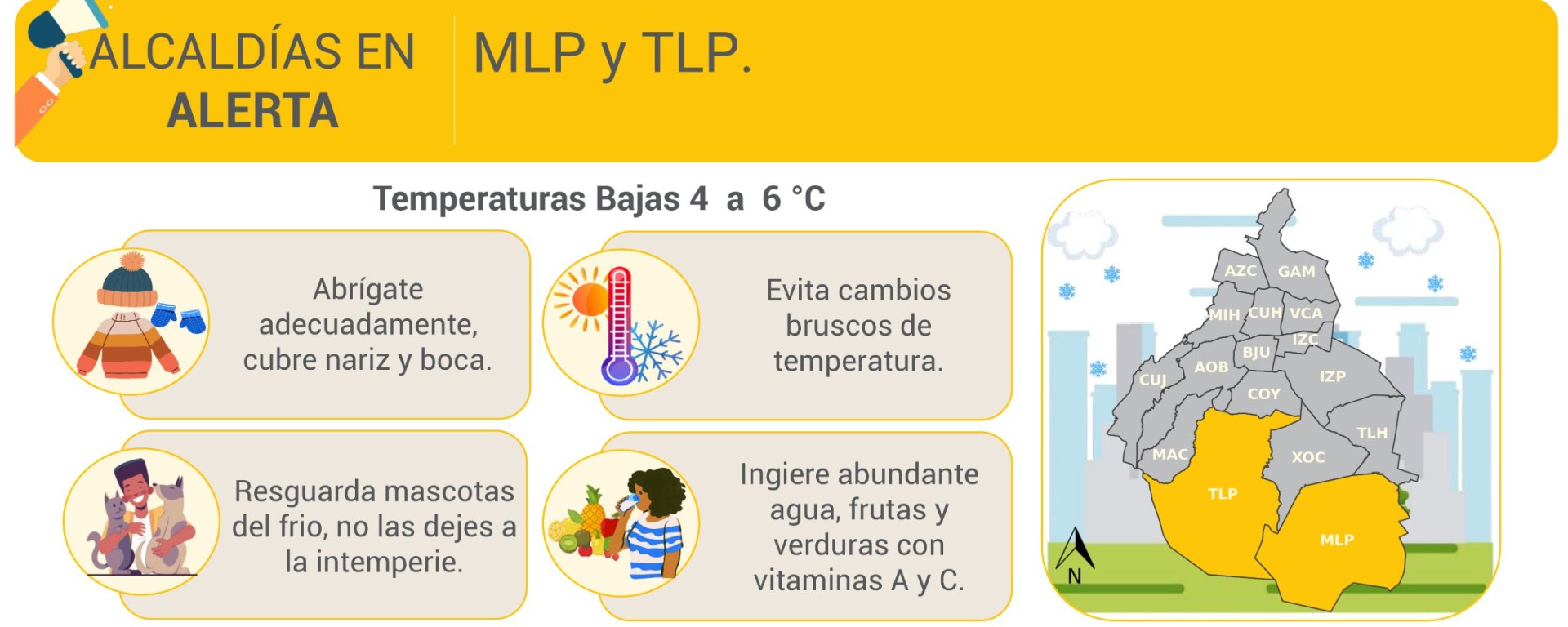 La Secretaría de Gestión Integral de Riesgos y Protección Civil (SgIrPc) informó que activó la Alerta Amarilla por el pronóstico de temperaturas bajas previsto para la madrugada y la mañana del viernes 21 de noviembre de 2025, y confirmó que las demarcaciones Milpa Alta y Tlalpan concentraron el mayor riesgo ante el descenso térmico. La dependencia precisó que el aviso formó parte del monitoreo permanente que realizó en la zona sur de la capital, y explicó que el mecanismo de alerta se aplicó cuando los modelos meteorológicos identificaron condiciones sostenidas de frío. La institución añadió que la medida buscó prevenir afectaciones a la población y fortalecer la difusión de recomendaciones de salud.