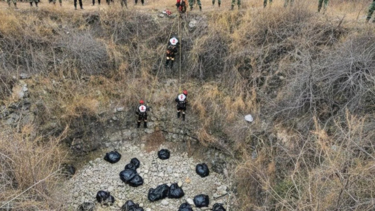 Para revisar el contenido, paramédicos de Cruz Roja Mexicana (Cruz Roja) de la delegación Tehuacán descendieron aproximadamente 30 metros hacia el punto donde estaban las bolsas. El personal evaluó el terreno para evitar accidentes durante la maniobra y confirmó que los paquetes estaban distribuidos a diferentes alturas. Tras la primera inspección, los paramédicos corroboraron la presencia de restos humanos sin posibilidad de determinar su cantidad exacta.