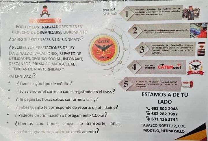 Denuncian extorsión sindical de la CATEM en Sonora
