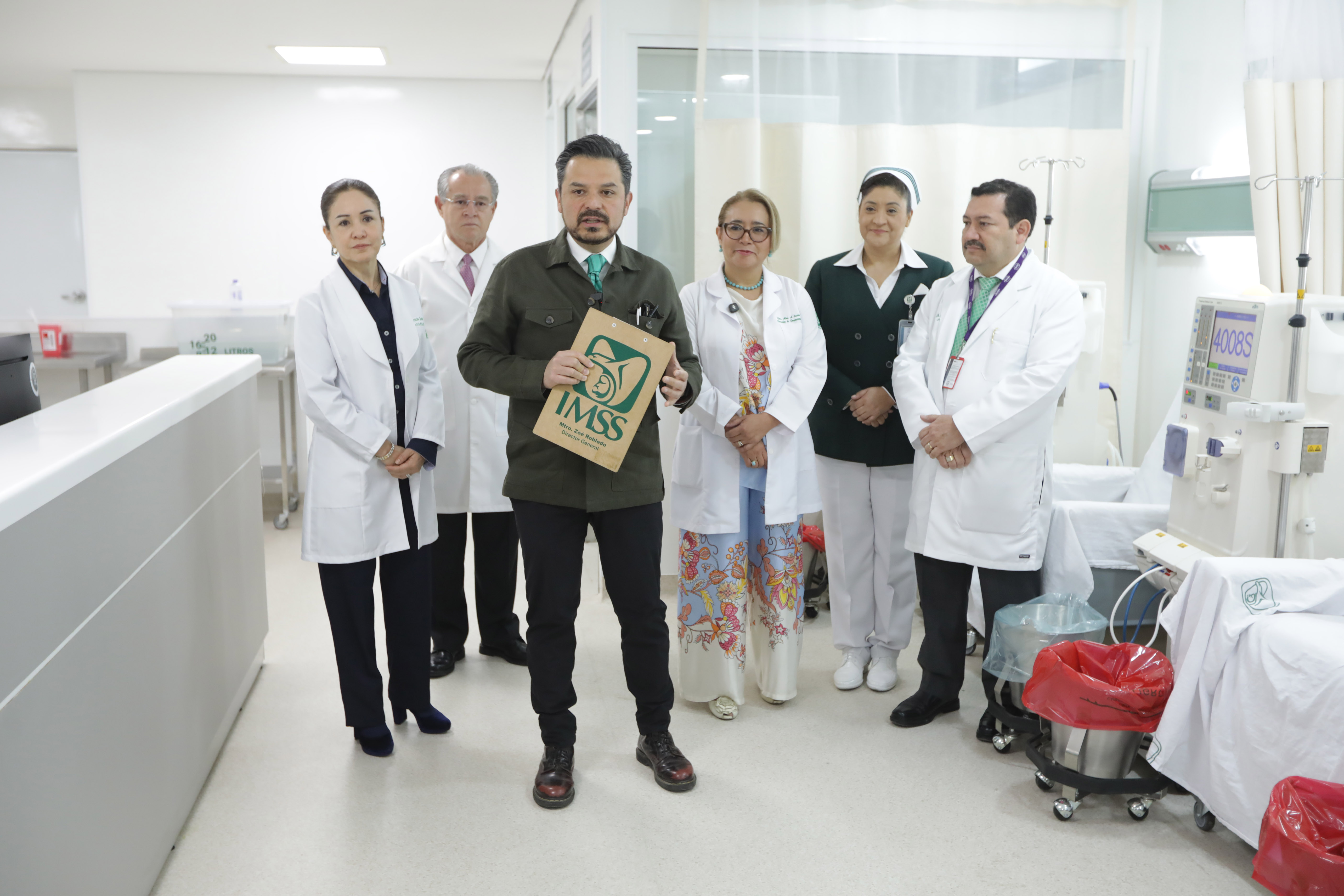 Acompañado por la representante del IMSS en ciudad de México Norte, Patricia Soto Márquez, recordó que el inmueble fue habilitado en septiembre de 2021, junto con la entonces jefa de Gobierno, Claudia Sheinbaum Pardo, para atender la emergencia por COVID-19. Tras diversos procesos de adecuación, el espacio fue reconvertido en un área de hemodiálisis.