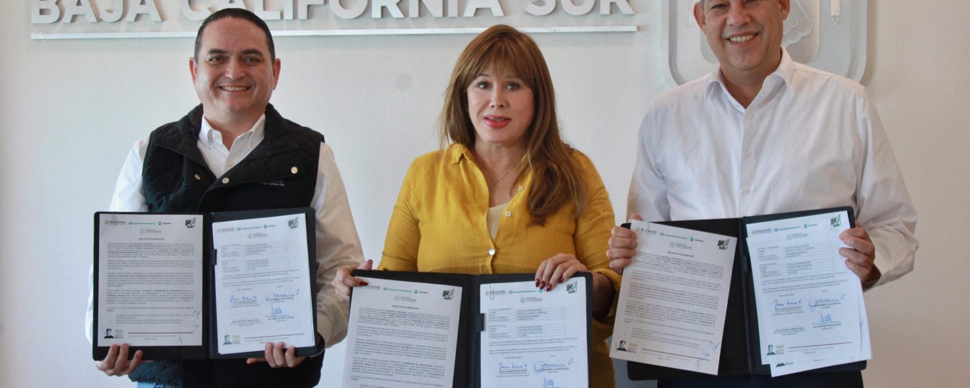 Con el objetivo de impulsar el crecimiento económico y ampliar las oportunidades de financiamiento para micro, pequeñas y medianas empresas (MIPyMES) sudcalifornianas, la titular de la Secretaría de Turismo y Economía (SETUE), Maribel Collins, firmó un convenio de colaboración con Nacional Financiera (NAFIN) y Bancomext, representadas por Pablo García.