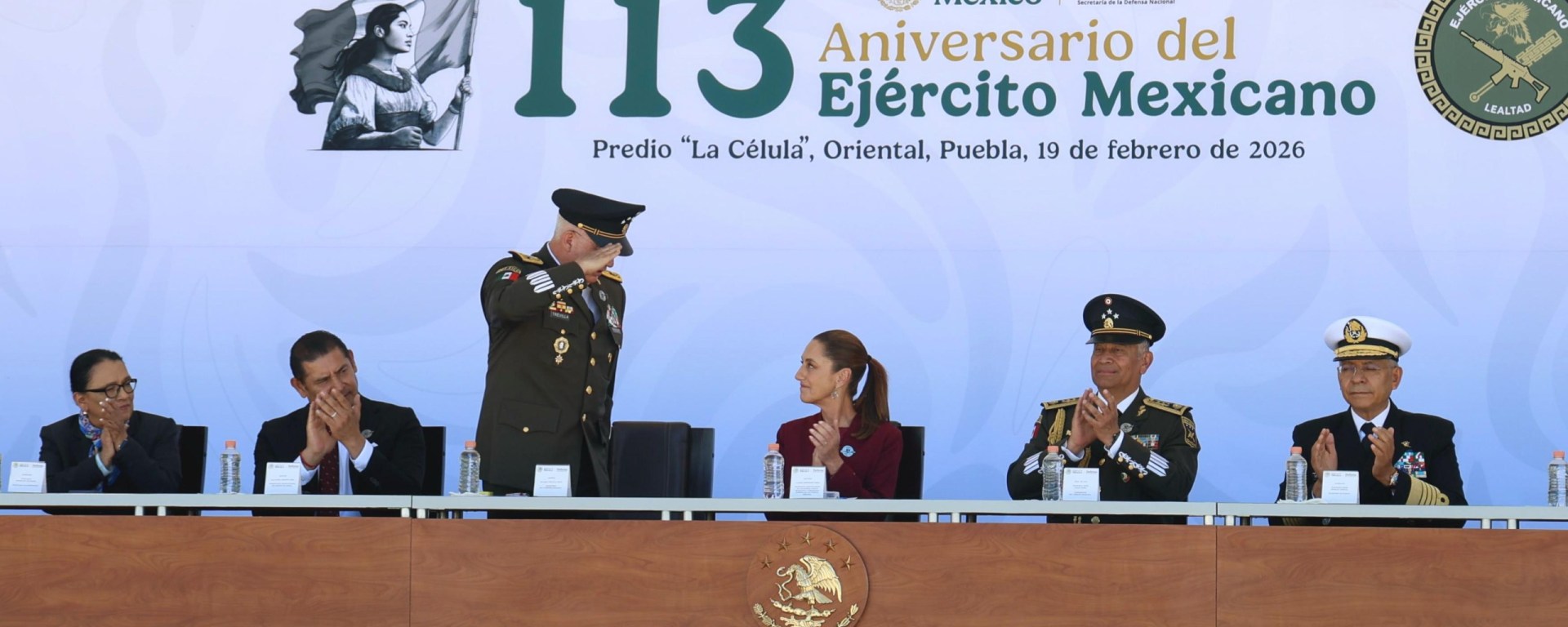 “El Ejército Mexicano es la consecuencia de un origen profundamente ligado a la voluntad popular. Hoy que vivimos en un mundo complejo, donde presiones externas, intereses geopolíticos y los desafíos globales pueden poner a prueba la soberanía de las naciones, en ese contexto, nuestras Fuerzas Armadas son garantía de que México decidirá su destino con independencia. La soberanía no es una consigna abstracta, es la capacidad real de nuestro pueblo para gobernarse sin imposiciones”, afirmó desde el Predio “La Célula”, en Oriental, Puebla, sede de la industria militar de la Defensa.