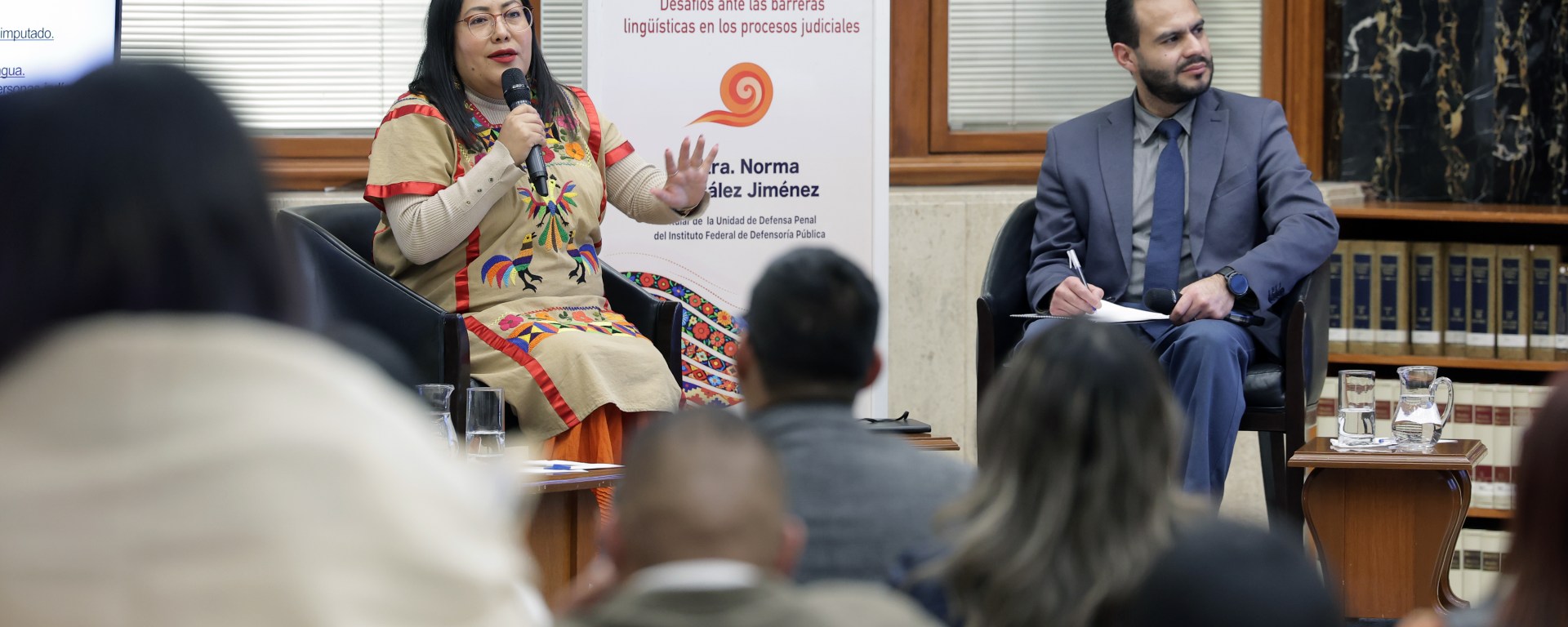 Al impartir la conferencia “Entender la justicia en tu propia lengua. Desafíos ante las barreras lingüísticas en los procesos judiciales”, la titular de la Unidad de Defensa Penal del Instituto Federal de Defensoría Pública (IFDP), Norma González Jiménez, aseguró que “las barreras lingüísticas forman parte de las dificultades que la justicia debe vencer para que las personas puedan ejercer de manera plena sus derechos”.
