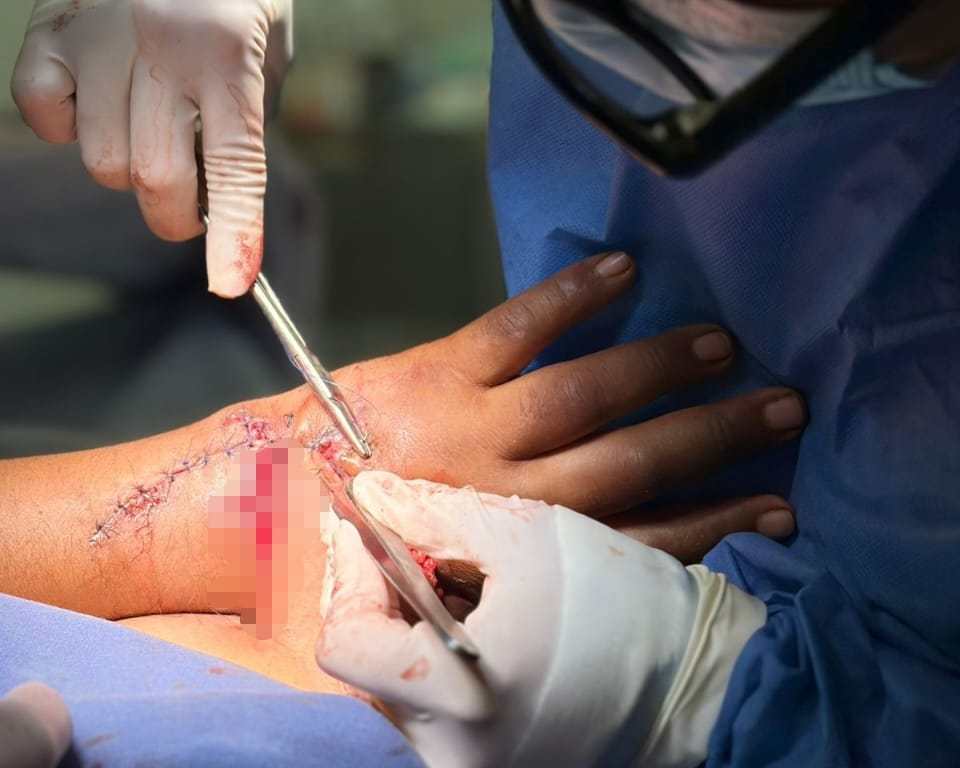 “Aparte de la reconstrucción del hueso, de reconstrucción de los tejidos blandos, se le hizo una cobertura cutánea, entonces se le tomó un injerto para cubrir la totalidad de la herida, por lo que prácticamente el paciente salió otra vez con huesos de la mano, con movilidad, con buena circulación, y con la cobertura total de la herida”, subrayó.
