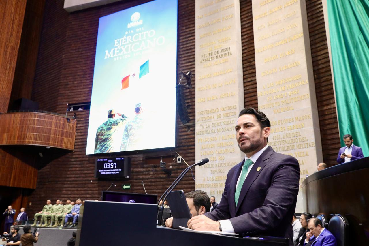 Desde la tribuna del Palacio de San Lázaro, el legislador señaló que cada 19 de febrero México no sólo conmemora a una institución armada, sino el espíritu de la defensa de la soberanía, del orden constitucional y del bienestar de la patria.