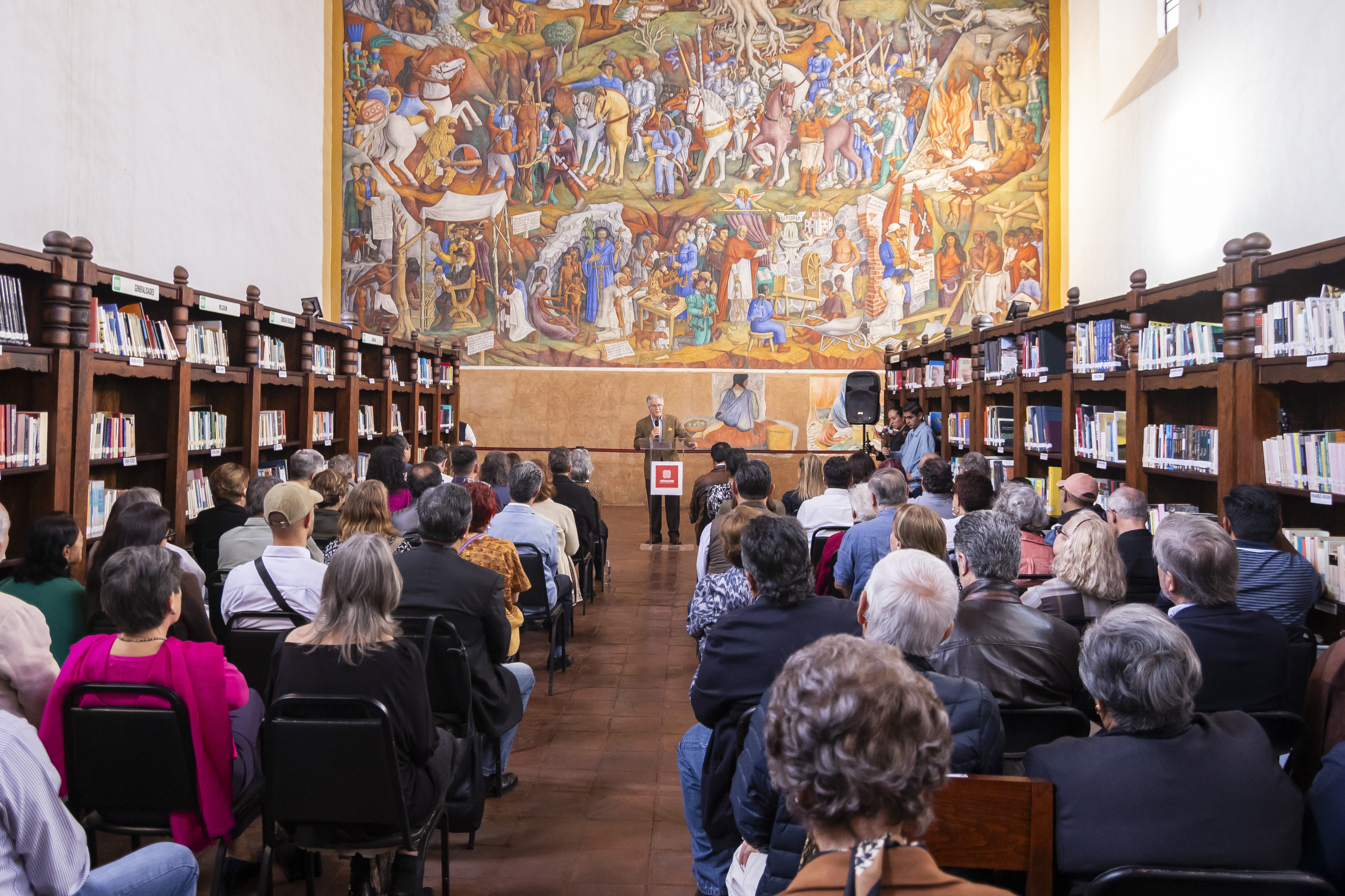 El mural La Historia de Michoacán , pintado por Juan O’Gorman en la Biblioteca Gertrudis Bocanegra, fue restaurado por especialistas del Centro Nacional de Conservación y Registro del Patrimonio Artístico Mueble (Cencropam) del Instituto Nacional de Bellas Artes y Literatura, gracias a la colaboración entre Femsa y la asociación civil Por Pátzcuaro AC.