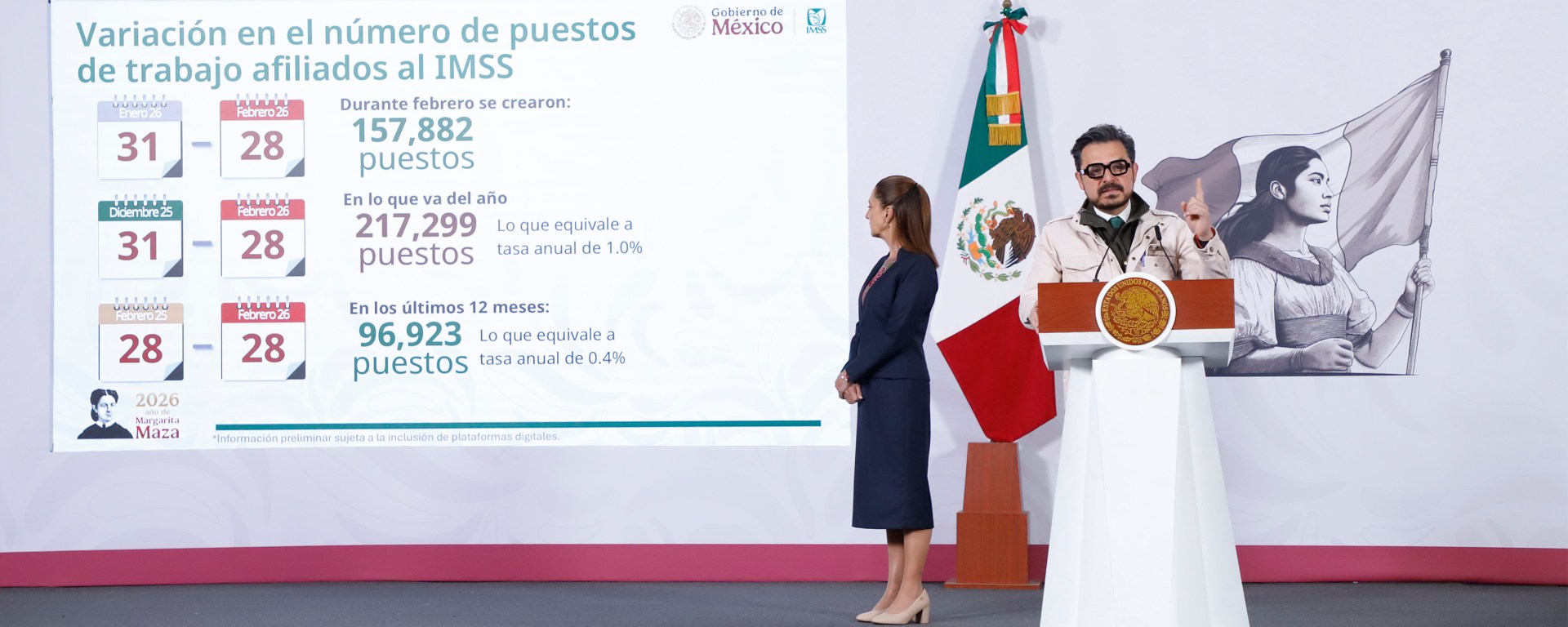 “Este es el empleo tradicional, el que se registra en el IMSS, sin considerar lo que se está procesando en plataformas, que se dará a conocer el próximo lunes 9 de marzo; es decir, todavía la cifra puede modificarse, seguramente al alza. Entonces lo dejamos como preliminar”, dijo.