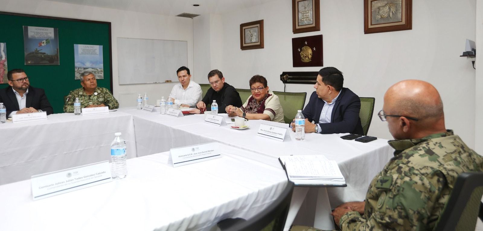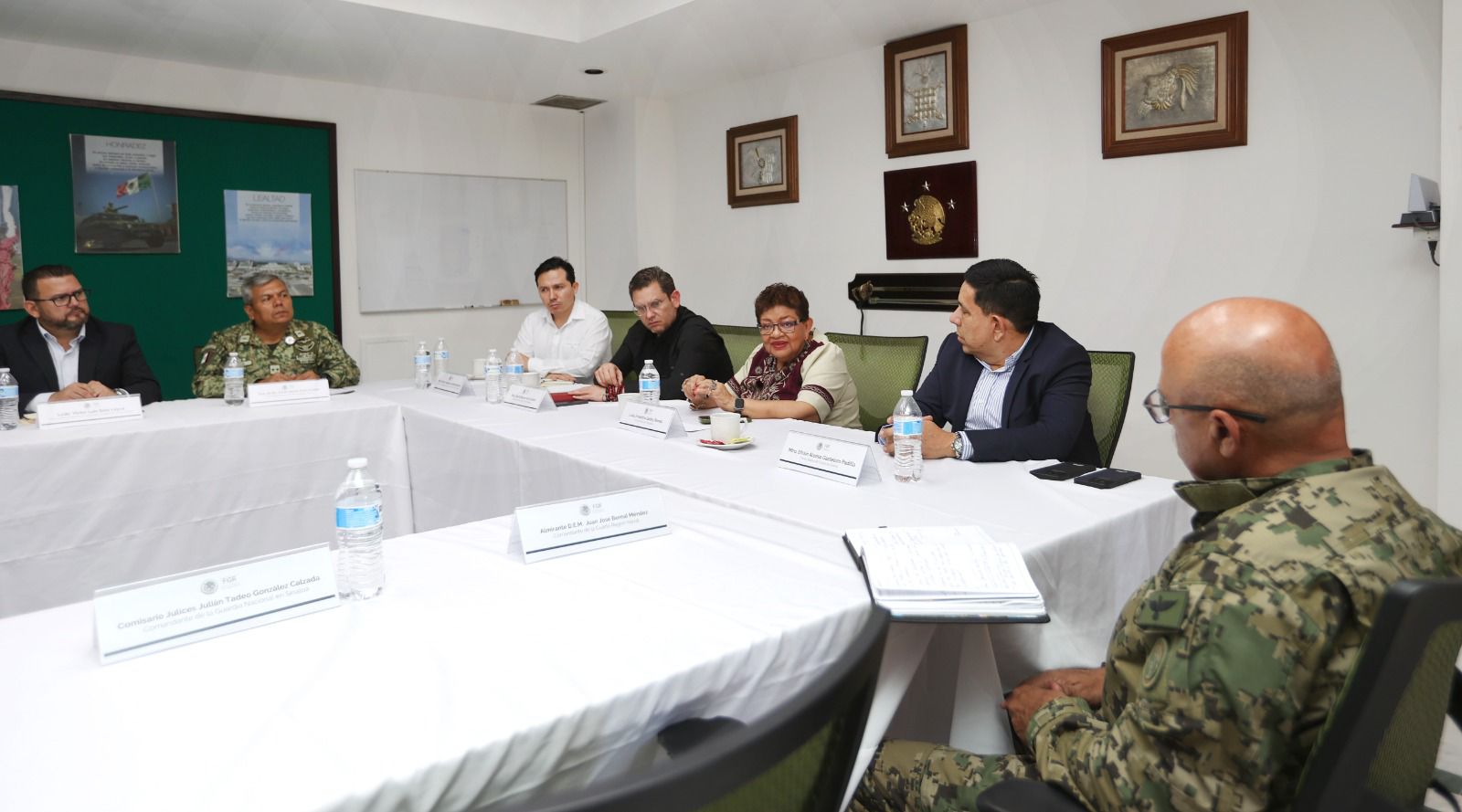 En la reunión estuvieron presentes el titular de la Fiscalía Especializada de Control Regional (FECOR), David Boone de la Garza; el Fiscal Federal en el estado de Sinaloa, Efraín Alonso Gastélum; la Fiscal General del estado, Claudia Zulema Sánchez Kondo; la presidenta municipal de Mazatlán, Estrella Palacios Domínguez; así como mandos del Ejército Mexicano, la Secretaría de Marina y la Guardia Nacional, entre otros. –sn–