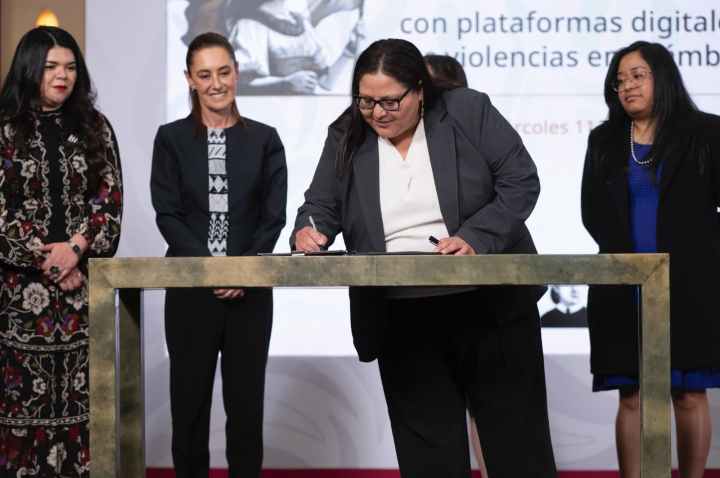 “Es un primer acuerdo, es voluntario, pero nos permite que la Secretaría de la Mujer o de las Mujeres esté en contacto permanente con las plataformas. Ustedes saben que hay distintas formas de violencia en las plataformas digitales contra las mujeres y el objetivo es ir atendiendo, y que las plataformas, a través de estos protocolos, vayan bajando imágenes o publicaciones que tengan que ver con violentar a una mujer. Entonces, es un primer acuerdo; es muy bueno para el país y es muy bueno para las mujeres mexicanas”, resaltó.