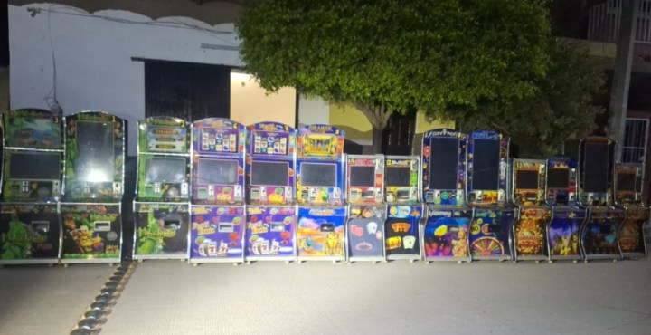 Derivado de recorridos de vigilancia efectuados por personal naval en los municipios de Rosamorada, Tuxpan y Santiago Ixcuintla, Nayarit, se localizaron y aseguraron un total de 37 máquinas tragamonedas que operaban de manera irregular.