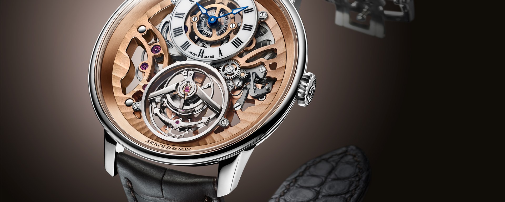 Arnold & Son continúa reinventando su colección Ultrathin Tourbillon. El calibre A&S8320 revela sus curvas, sus aberturas y sus detalles y se atavía con una caja de 41,5 mm editada en 28 unidades de oro rojo (5N) y 28 de platino (Pt950). Envuelto en tan preciadas galas, el tourbillon volante de Arnold & Son se distingue por su finura y su precisión.