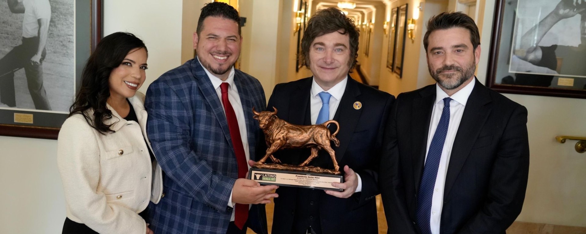 La distinción fue entregada por Gabriela Berrospi y Tony Delgado, fundadores de Latino Wall Street, @latinowallst, junto al periodista Javier Negre, director de La Derecha Diario. Los tres también formaron parte del comité organizador de la exitosa Hispanic Prosperity Gala, realizada el pasado 10 de febrero en The Mar-a-Lago Club, un encuentro de alto perfil que congregó a líderes internacionales, empresarios, celebridades y figuras influyentes para celebrar el éxito, la prosperidad y la creciente influencia de la comunidad hispana en los Estados Unidos.