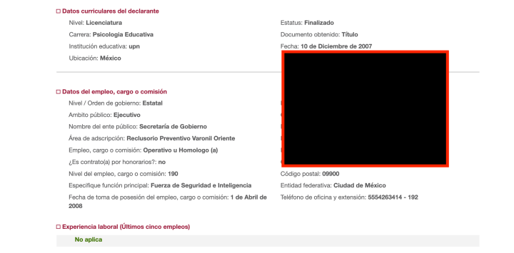 Una declaración patrimonial de Amparo Elizabeth, consultada por SOCIEDAD NOTICIAS, detalla que en la actualidd obtiene un sueldo mensual de alrededor de 18 mil pesos mensuales, unos 220,448 mil pesos anuales; y descarta tener otros ingresos económicos.