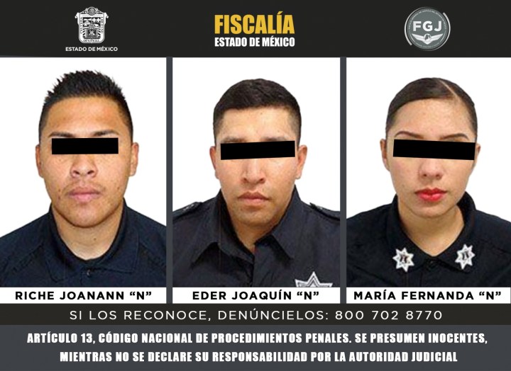 La Fiscalía General de Justicia del Estado de México (FGJEM), obtuvo la vinculación a proceso de tres sujetos identificados como María Fernanda “N”, Riche Joannan “N” y Eder Joaquín “N”, quienes eran policías municipales de Naucalpan, por su probable responsabilidad en los delitos de abuso de autoridad y tortura, hechos cometidos en agravio de una mujer transexual.
