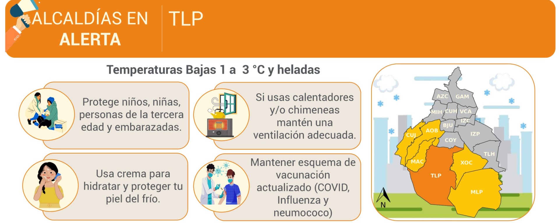 La Secretaría de Gestión Integral de Riesgos y Protección Civil (SGIRPC) activó una Alerta Naranja ante el pronóstico de temperaturas bajas para la madrugada y mañana de este miércoles 25 de marzo en la alcaldía Tlalpan.
