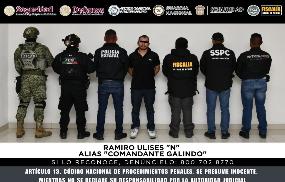 Un operativo conjunto de autoridades federales y estatales permitió la captura de Ramiro Ulises “N”, alias “Comandante Galindo”, presunto líder de la célula “Operativa Delta” del Cártel Jalisco Nueva Generación (CJNG) en la región oriente del Estado de México.