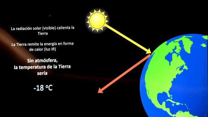 En la conferencia ¿Podemos tapar el Sol para enfriar la Tierra? explicó que el principal factor que determina la temperatura es la radiación solar, especialmente la visible, que llega a nuestro planeta, absorbe casi toda esa energía y luego la remite como luz infrarroja.