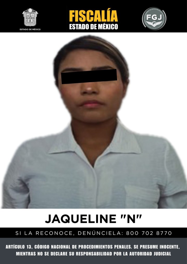 El pasado 22 de marzo, Jaqueline “N” fue detenida en el municipio de Zumpango, en cumplimiento de orden de aprehensión por el delito de robo, por lo que fue ingresada al Centro Penitenciario y de Reinserción Social de Tlalnepantla en donde quedó a disposición de un Juez.