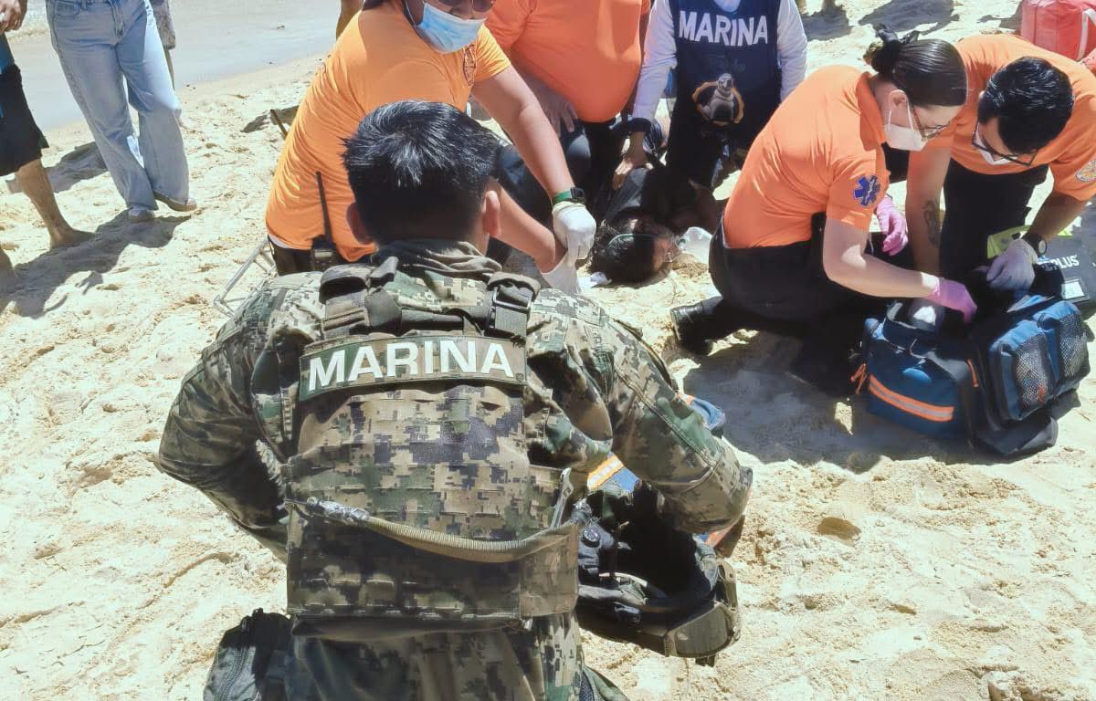Los elementos navales ejecutaron maniobras de rescate en el agua para salvaguardar la integridad de la persona, quien fue trasladada a un punto seguro en la playa. Posteriormente, se le brindó atención inicial por parte del equipo de Sanidad Naval, en coordinación con brigadas de rescate locales.
