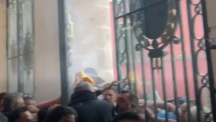 Guardias cerraron los accesos al recinto legislativo, así como se lanzó un polvo de extintor con la finalidad de evitar que los protestantes ingresaran.