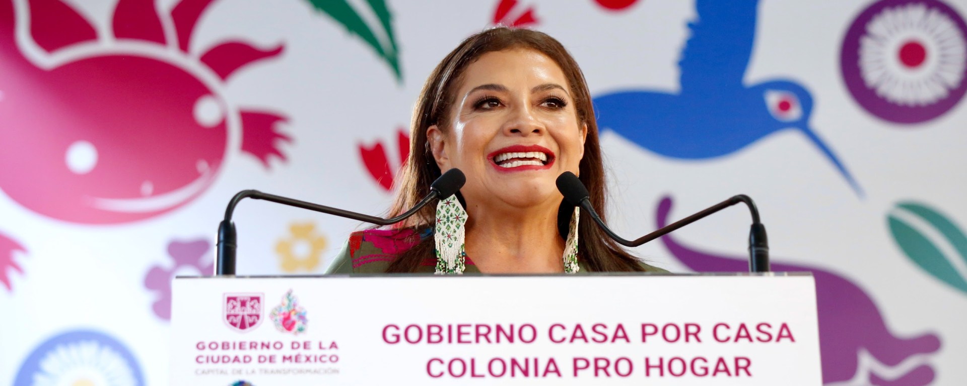Clara Brugada Molina, jefe de gobierno capitalina, encabezó el programa Casa por Casa en la colonia Pro Hogar, alcaldía Azcapotzalco, donde anunció la aplicación de un amplio programa de mejoramiento de servicios y espacios públicos en beneficio de la población de esta comunidad.