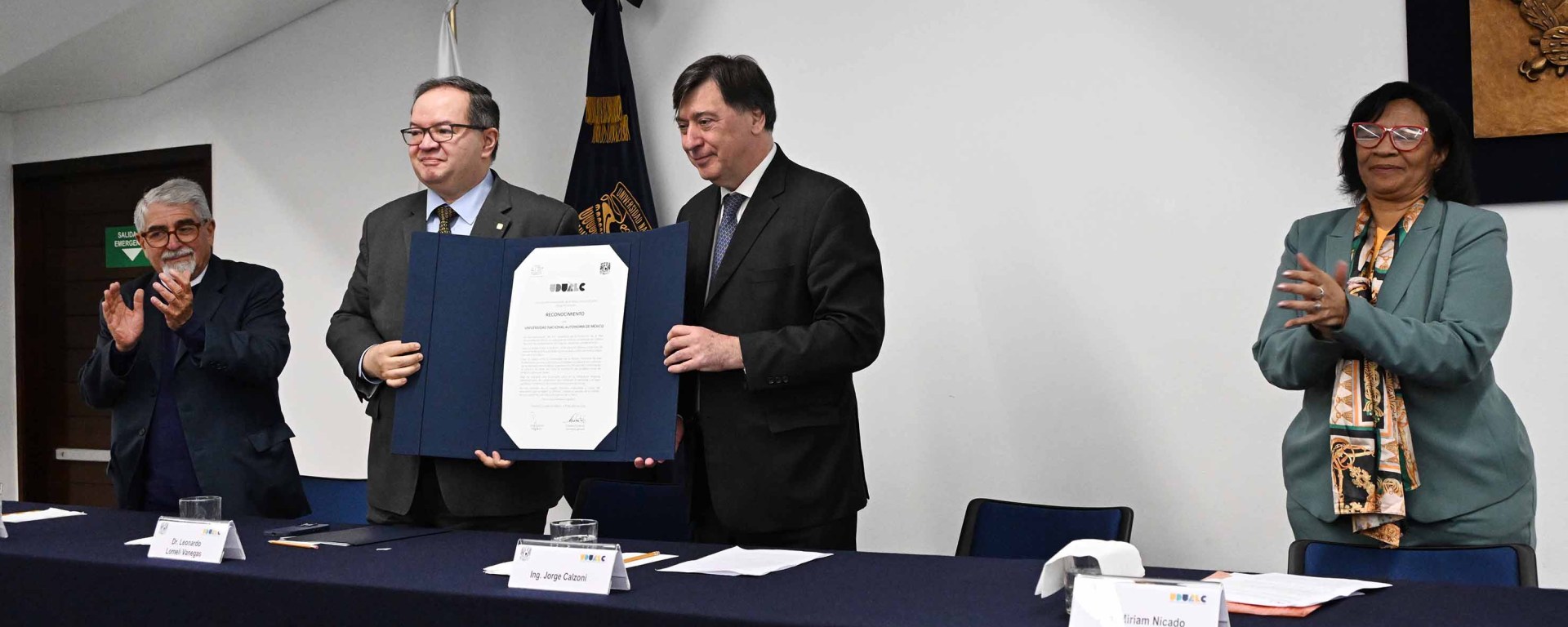 Al recibir el reconocimiento, el rector Leonardo Lomelí expresó: “Lo aceptamos como un acto que ratifica la importancia y la pertinencia de un proyecto educativo que ha impulsado el desarrollo intelectual, científico, tecnológico y cultural de México durante casi cinco siglos”.