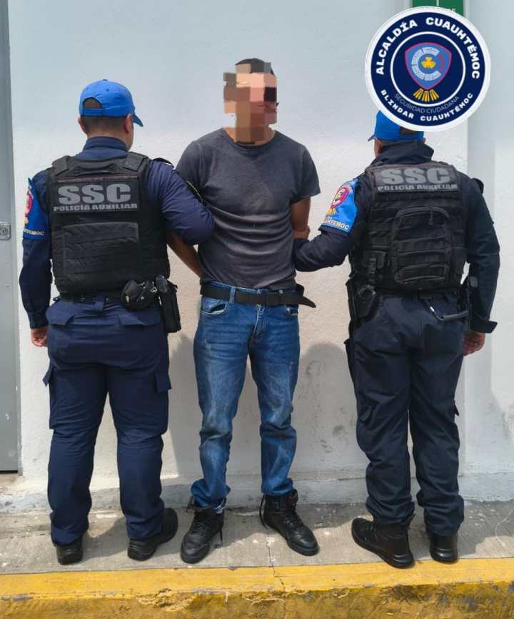 Elementos de la Policía Auxiliar al servicio de Blindar Cuauhtémoc aseguraron a un hombre señalado por su probable participación en un robo con violencia, en el que una mujer resultó lesionada con un objeto punzocortante, en calles de la colonia Morelos.