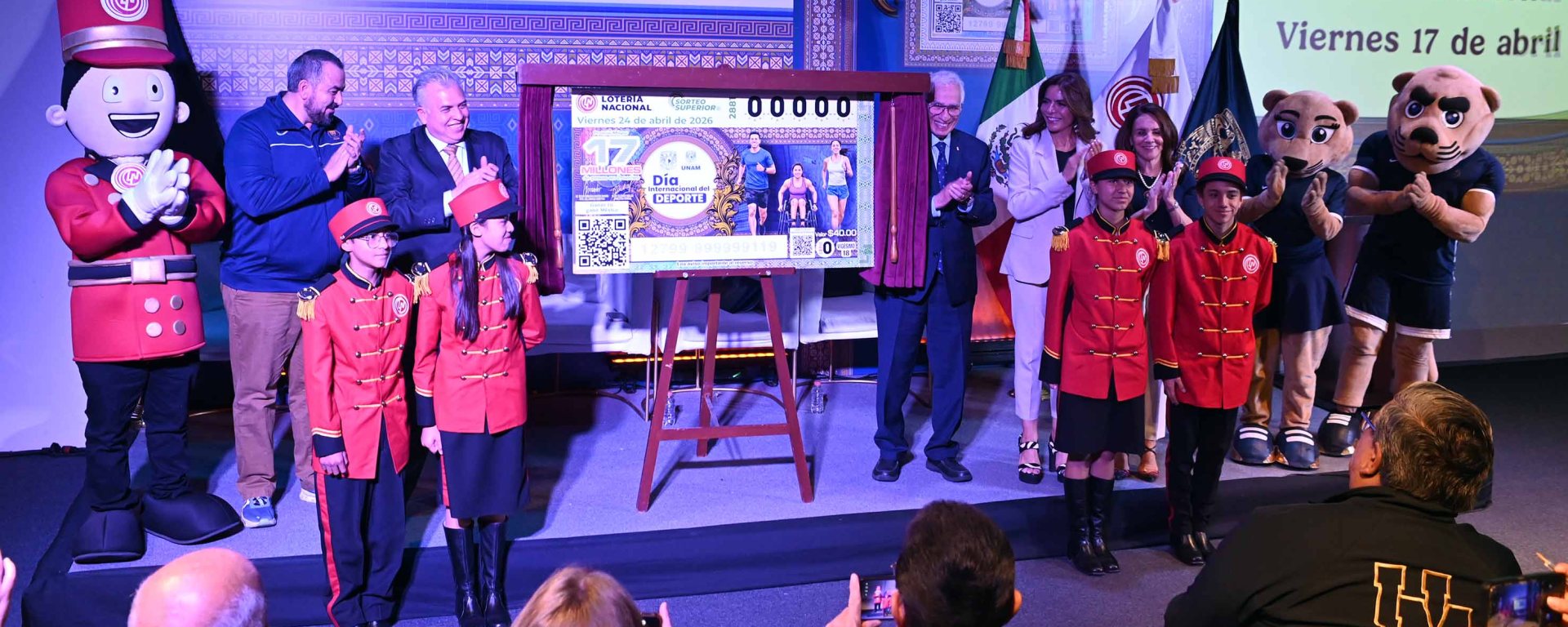 Participó junto con el presidente del Consejo Directivo de Fundación UNAM, Dionisio Meade y García de León; y la directora general de la Lotería Nacional, Olivia Salomón Vibaldo, en la Develación del Billete Conmemorativo del Sorteo Superior No. 2881, que se efectuará el 24 abril con motivo del Día Internacional del Deporte para el Desarrollo y la Paz.