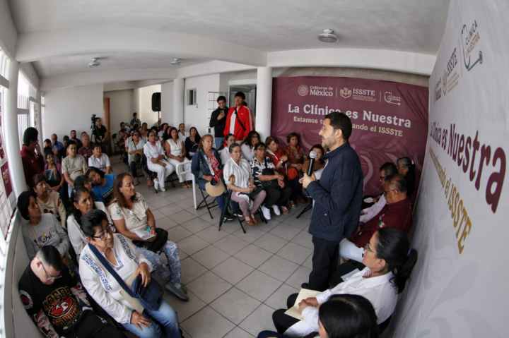 “Este domingo visité la Unidad de Medicina Familiar del @ISSSTE_mx en Zumpango, Estado de México. Me reuní con l@s derechohabientes en general, con quienes platiqué sobre las mejoras que hicieron con el programa La Clínica Es Nuestra, como la construcción de una nueva sala de espera. La Farmacia se encuentra en un 100%.”, publicó en redes sociales.