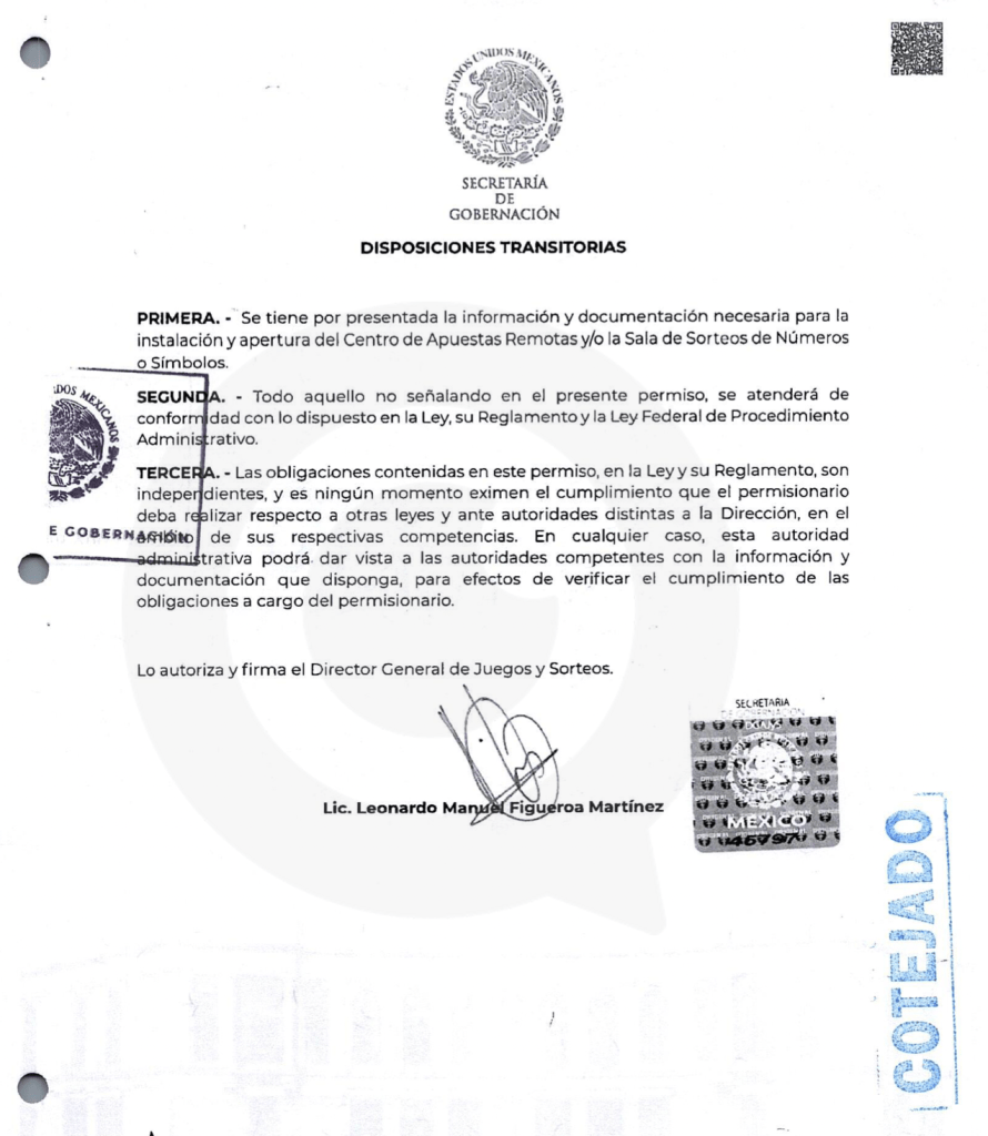 Dicho permiso fue otorgado en mayo de 2017 a la empresa Operadora de Coincidencias Numéricas, S.A. de C.V. y es con el que han operado múltiples casas de apuestas físicas y en línea en el país, incluyendo casinos de la familia del hoy preso Hernán Bermúdez Requena, identificado como líder del grupo criminal La Barredora.