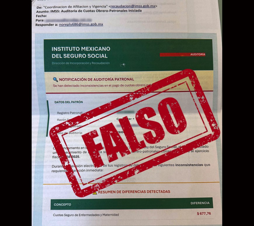 El documento se firma electrónicamente y contiene elementos de seguridad como un código QR que redirecciona a la página oficial del Instituto. Por Martín García | Reportero La Dirección de Incorporación y Recaudación (DIR) del Instituto Mexicano del Seguro Social (IMSS) alerta a patrones con personas trabajadoras afiliadas a la institución del envío de correos electrónicos falsos con supuestas notificaciones de inicio de auditorías, que … Continúa leyendo Alertan por envío de correos falsos con supuestas notificaciones del IMSS por auditorías
