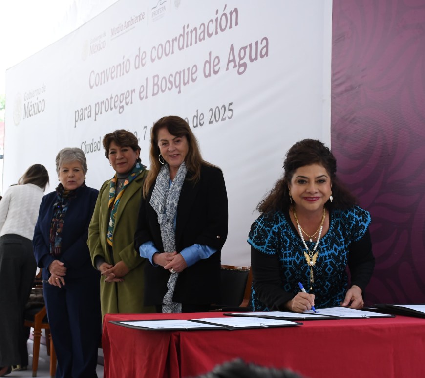 Firma jefa de gobierno Brugada convenio para defensa del bosque de agua con semarnat, Morelos y Edomex