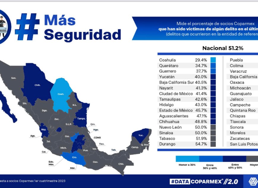 Hidalgo, con menor porcentaje de víctimas de delito: Coparmex