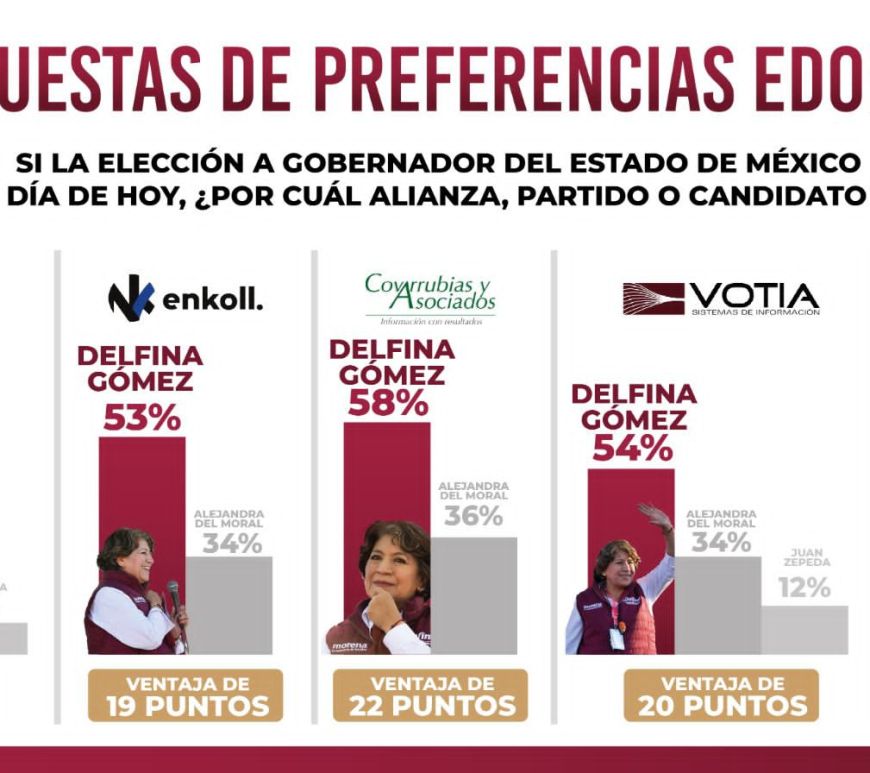 Delfina Gómez aumenta ventaja en preferencias de voto en edomex
