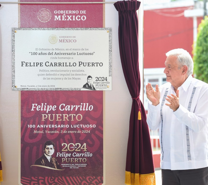 Presidente homenajea a Felipe Carrillo Puerto en Yucatán; destaca acciones del dirigente social a favor de los mayas SN Redacción “Tenemos que recordar a nuestros héroes, a los precursores de las transformaciones de Independencia, de Reforma, de Revolución y a lo que llamamos la Cuarta Transformación de la vida pública de México. Por eso recordamos aquí, en Motul, a Felipe Carrillo Puerto”, expresó el presidente … Continúa leyendo AMLO homenajea a Felipe Carrillo Puerto en Yucatán