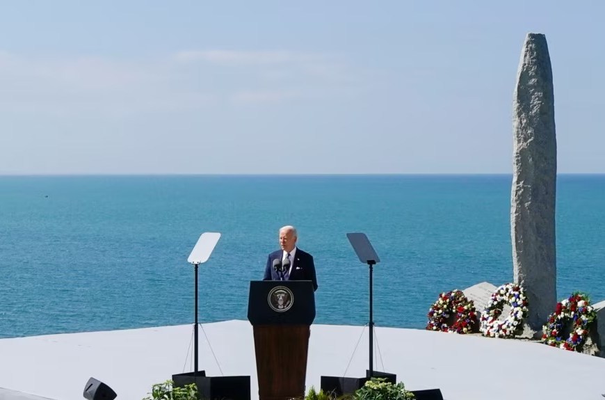 Biden pide volver a comprometerse con la democracia en discurso en Normandía