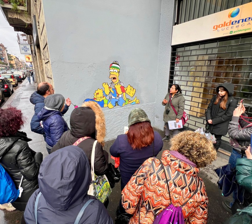 Los Simpson versión palestinos, aparecen en un mural en Milán