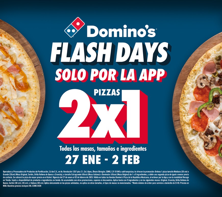 La promo estará vigente del 27 de enero al 2 de febrero a nivel nacional al pedir por delivery o pick up, y el 2×1 aplicará en todas las masas, tamaños, e ingredientes. Por Deyanira Vázquez | Reportera Domino’s, una de las cadenas de pizza más grandes e innovadoras en México arranca el año sorprendiendo a sus clientes con el regreso del 2×1 en todas … Continúa leyendo Domino’s Pizza ofrece 2×1 en todas sus pizzas
