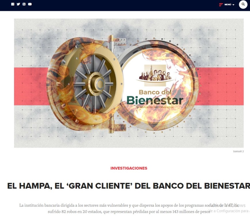 El Banco del Bienestar tiene como su ‘gran cliente’ al hampa. Por Mauricio Rubí | Mexicanos Contra la Corrupción La institución bancaria dirigida a los sectores más vulnerables y que dispersa los apoyos de los programas sociales de la 4T, ha sufrido 82 robos en 20 estados, que representan pérdidas por al menos 143 millones de pesos. Las personas de bajos ingresos son la población … Continúa leyendo El hampa, el ‘gran cliente’ del Banco del Bienestar: Mexicanos Contra la Corrupción