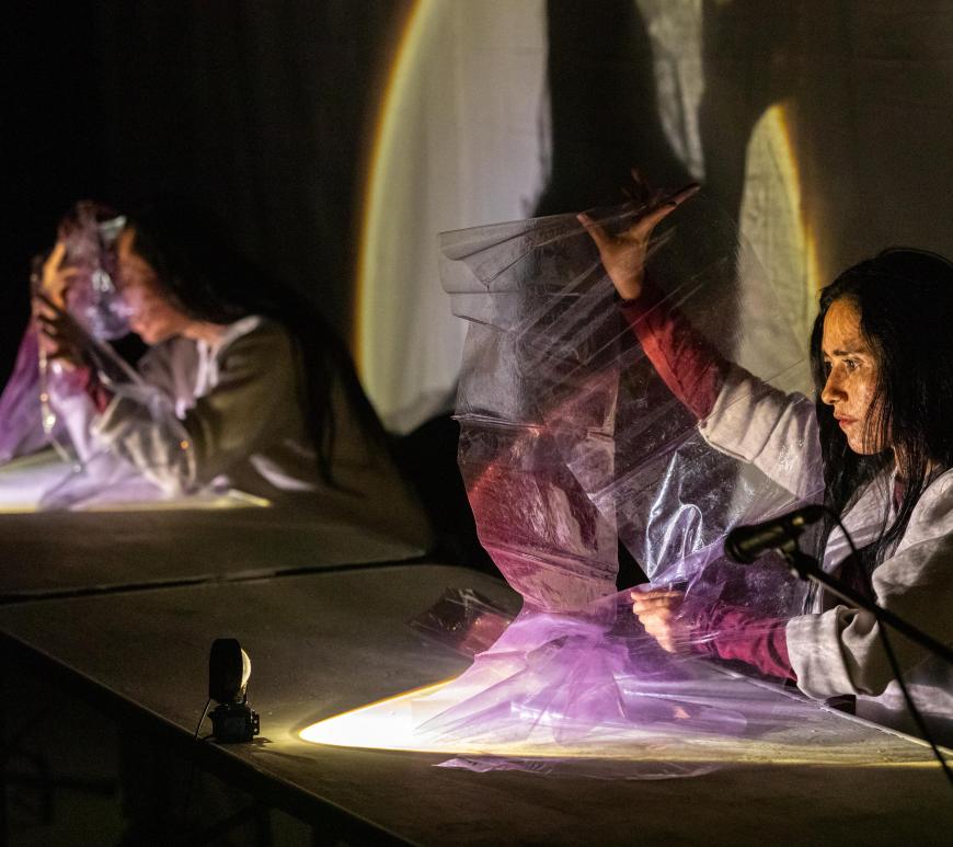 Con una propuesta inmersiva, la pieza invita a redescubrir el cuerpo desde lo visceral, lo sonoro y lo lúdico. Por Adriana López | Reportera Entre penumbras, texturas plásticas y sonidos guturales, un universo coreográfico fuera de lo convencional se expande en el Pabellón del Jardín Escénico con la instalación- performance Cuerpo no cuerpo , de los artistas Jésica Elizondo y Manuel Estrella. Es un laboratorio … Continúa leyendo “Cuerpo no cuerpo”, laboratorio sensorial que mezcla luz, sonido y movimiento